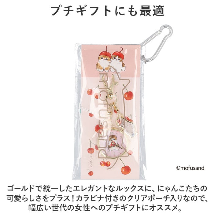 ・ゴールドで統一したエレガントなルックスに、にゃんこの可愛らしさをプラス!カラビナ付きのクリアポーチ入りなので、幅広い世代の女性へのプチギフトにオススメ。