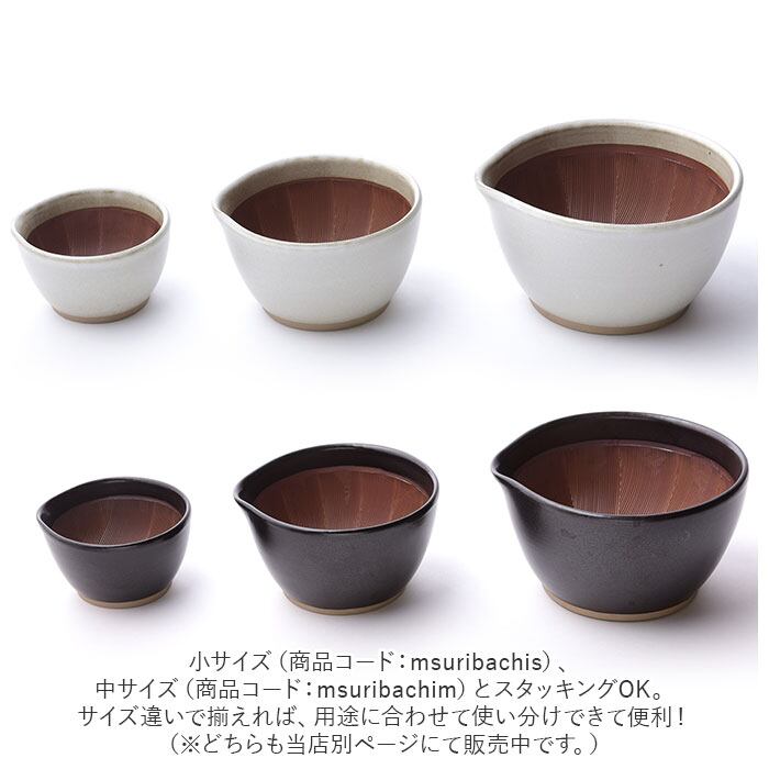 ・小サイズ(商品コード:msuribachis)、中サイズ(商品コード:msuribachim)とスタッキングOK。サイズ違いで揃えれば、用途に合わせて使い分けできて便利!(※どちらも当店別ページにて販売中です。)