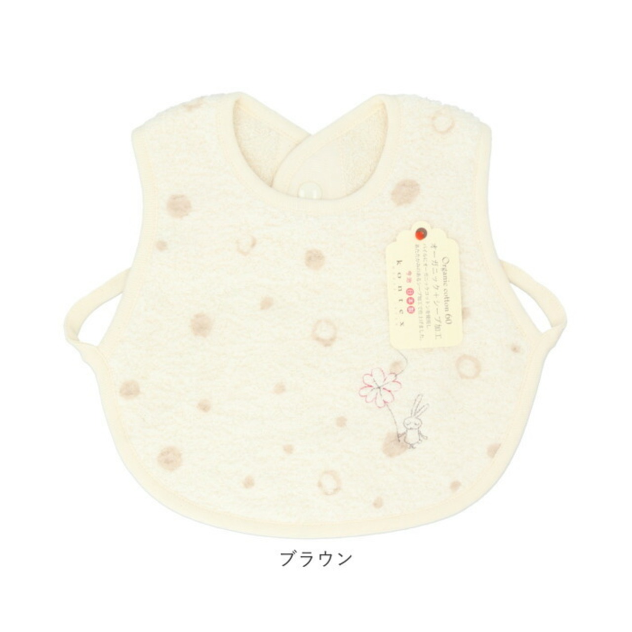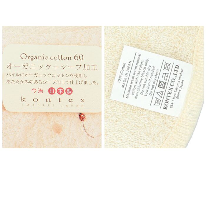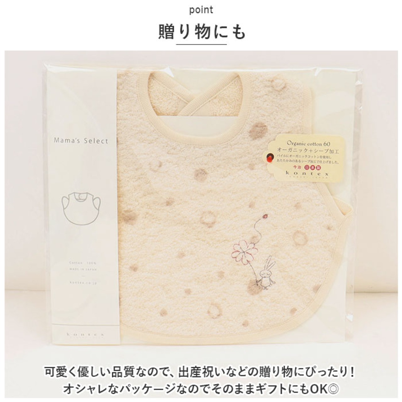 ・オーガニックコットン100%、素肌に優しいタオル素材のスタイ。安心の今治産で、汗やよだれをしっかりと吸収してくれる。