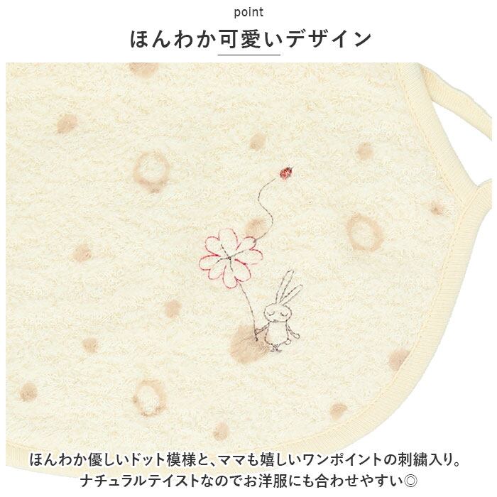 ・ほんわか優しいドット模様と、ママも嬉しいワンポイントの刺繍入り。ナチュラルテイストなのでお洋服にも合わせやすい◎