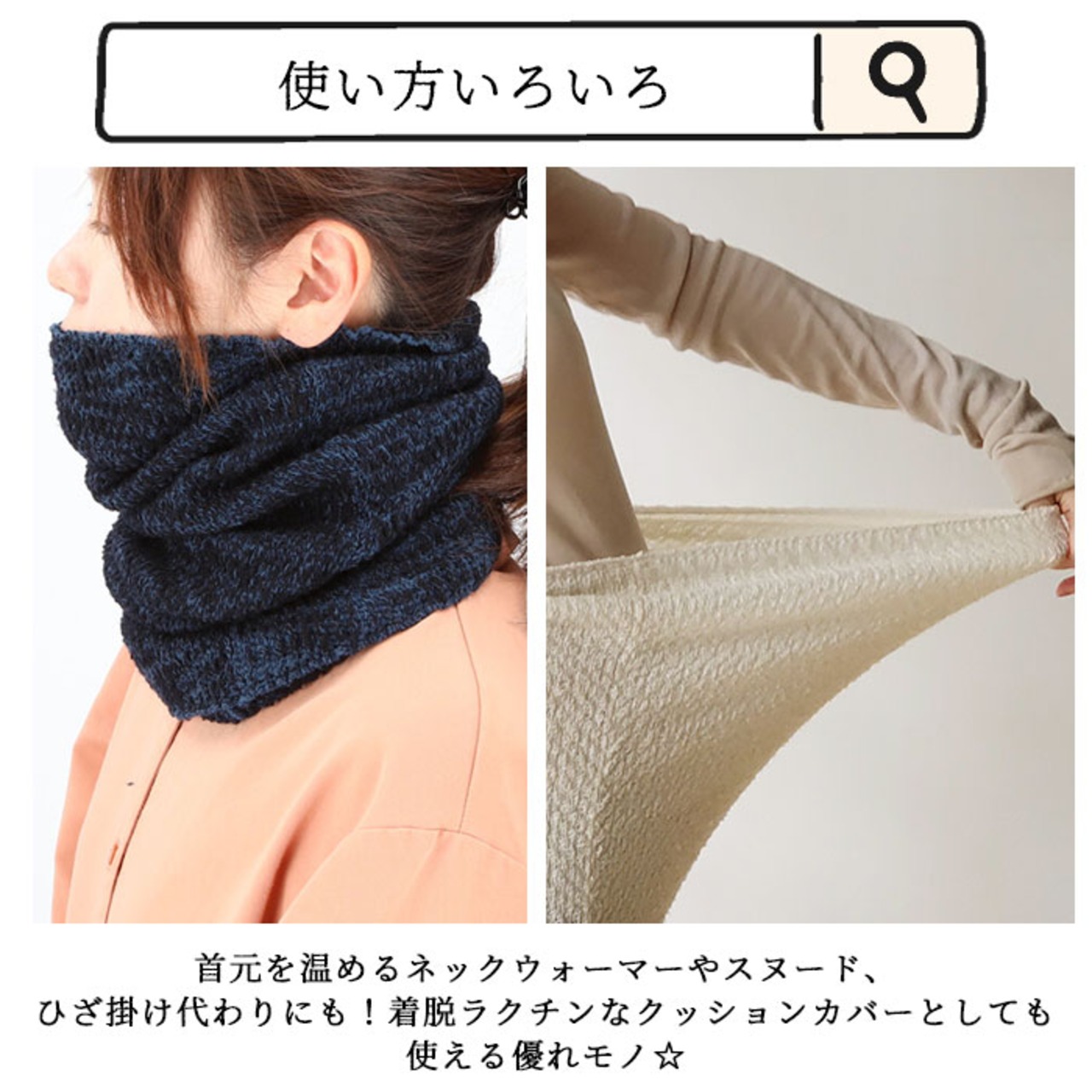 ・首元を温めるネックウォーマーやスヌード、ひざ掛け代わりにも!着脱ラクチンなクッションカバーとしても使える優れモノ☆