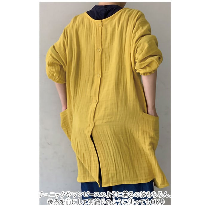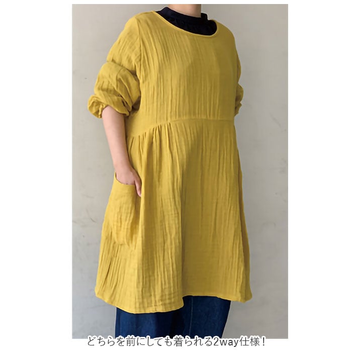 ・どちらを前にしても着られる2way仕様!チュニックやワンピースのように着るのはもちろん、後ろを前にして羽織りのように使ってもOK♪