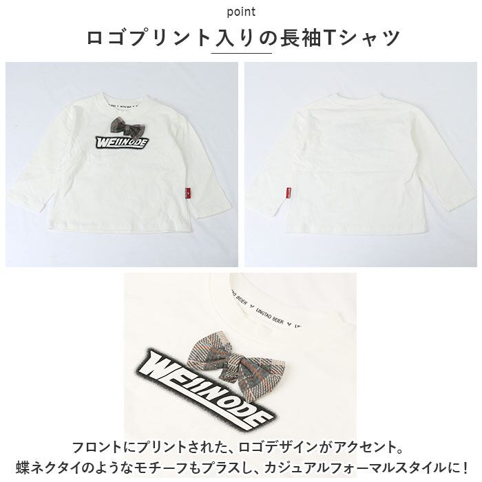 ・フロントにプリントされた、ロゴデザインがアクセント。蝶ネクタイのようなモチーフもプラスし、カジュアルフォーマルスタイルに!