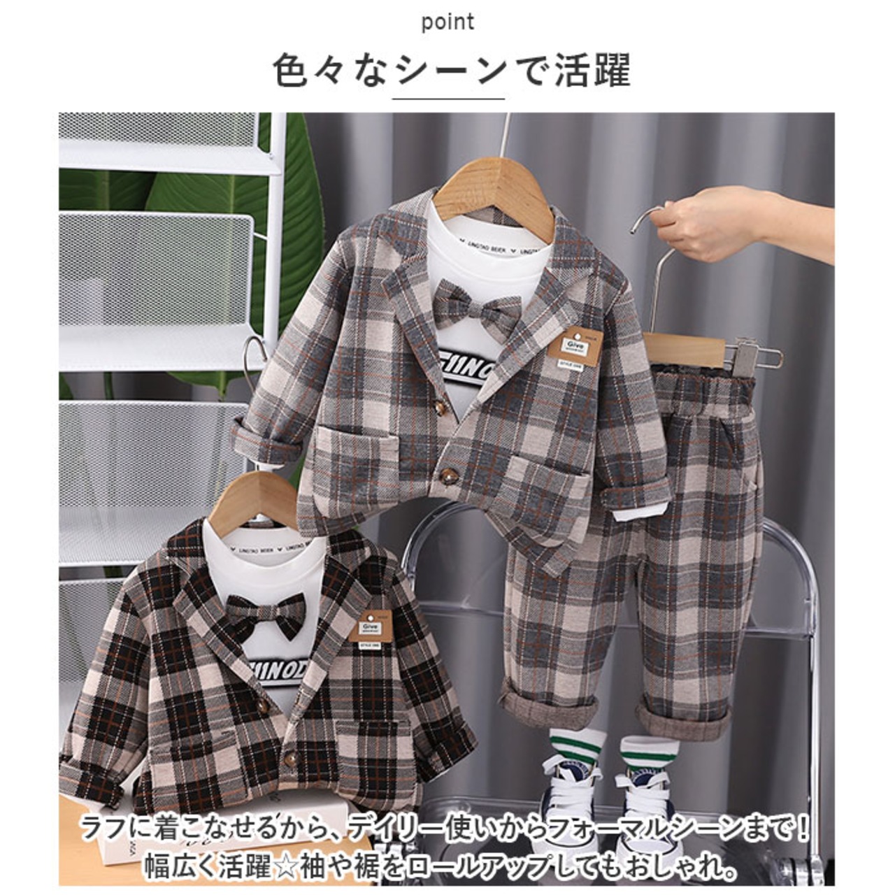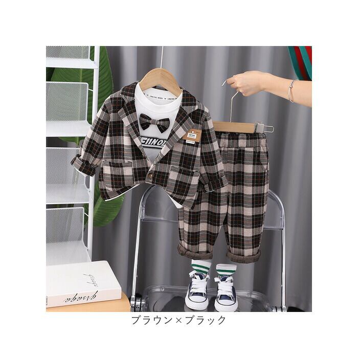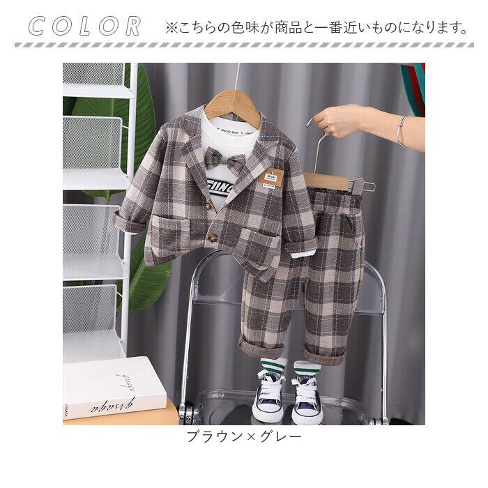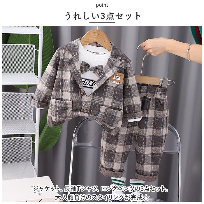 フォーマルスーツ キッズ チェック柄 通販 パンツスーツ フォーマル スーツ ジャケット 蝶ネクタイ リボン ズボン パンツ 子供服 子ども服 柄 ポケット 男の子 子供 子ども こども 発表会