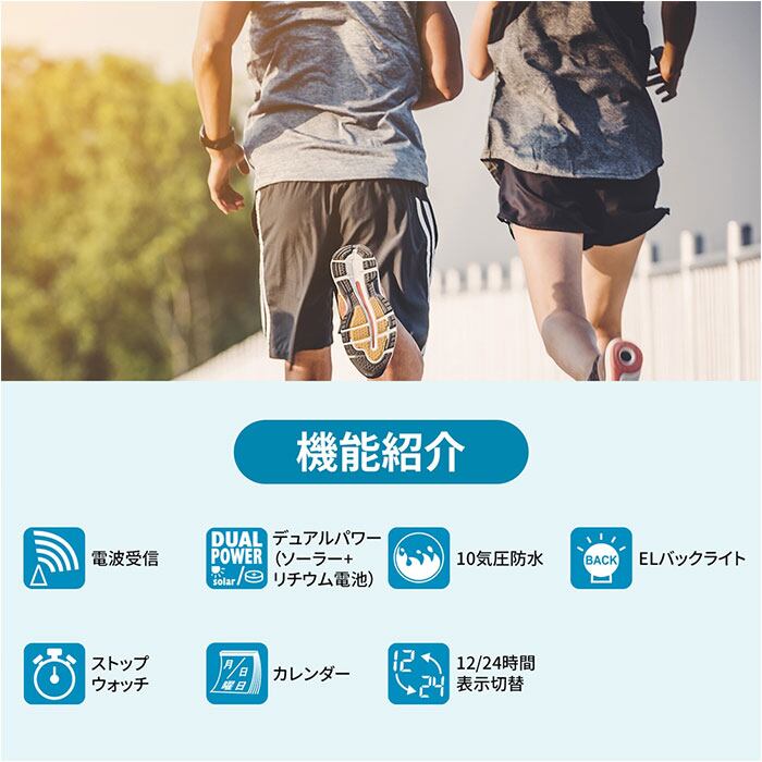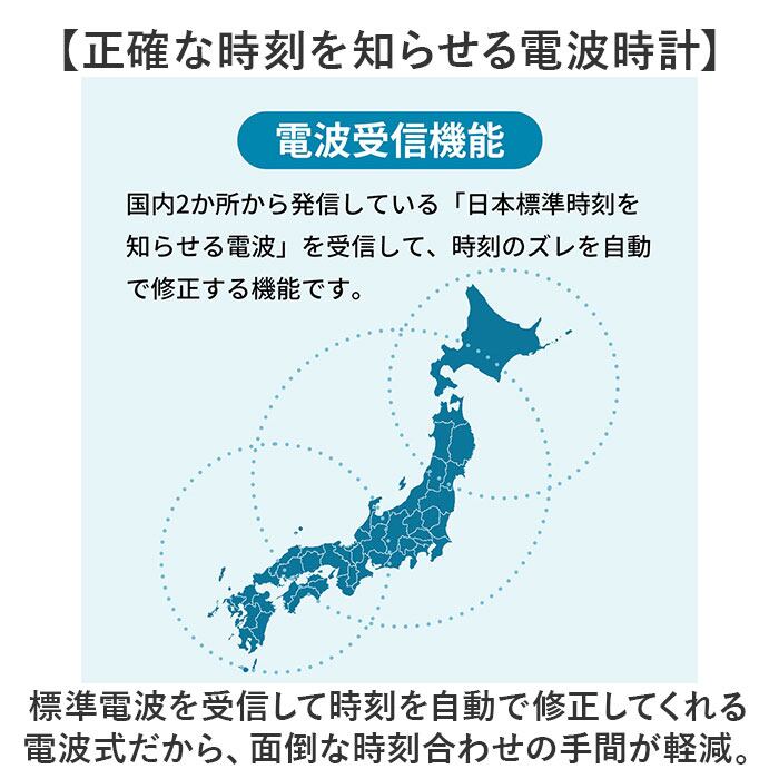 ・標準電波を受信して時刻を自動で修正してくれる電波式だから、面倒な時刻合わせの手間が軽減。