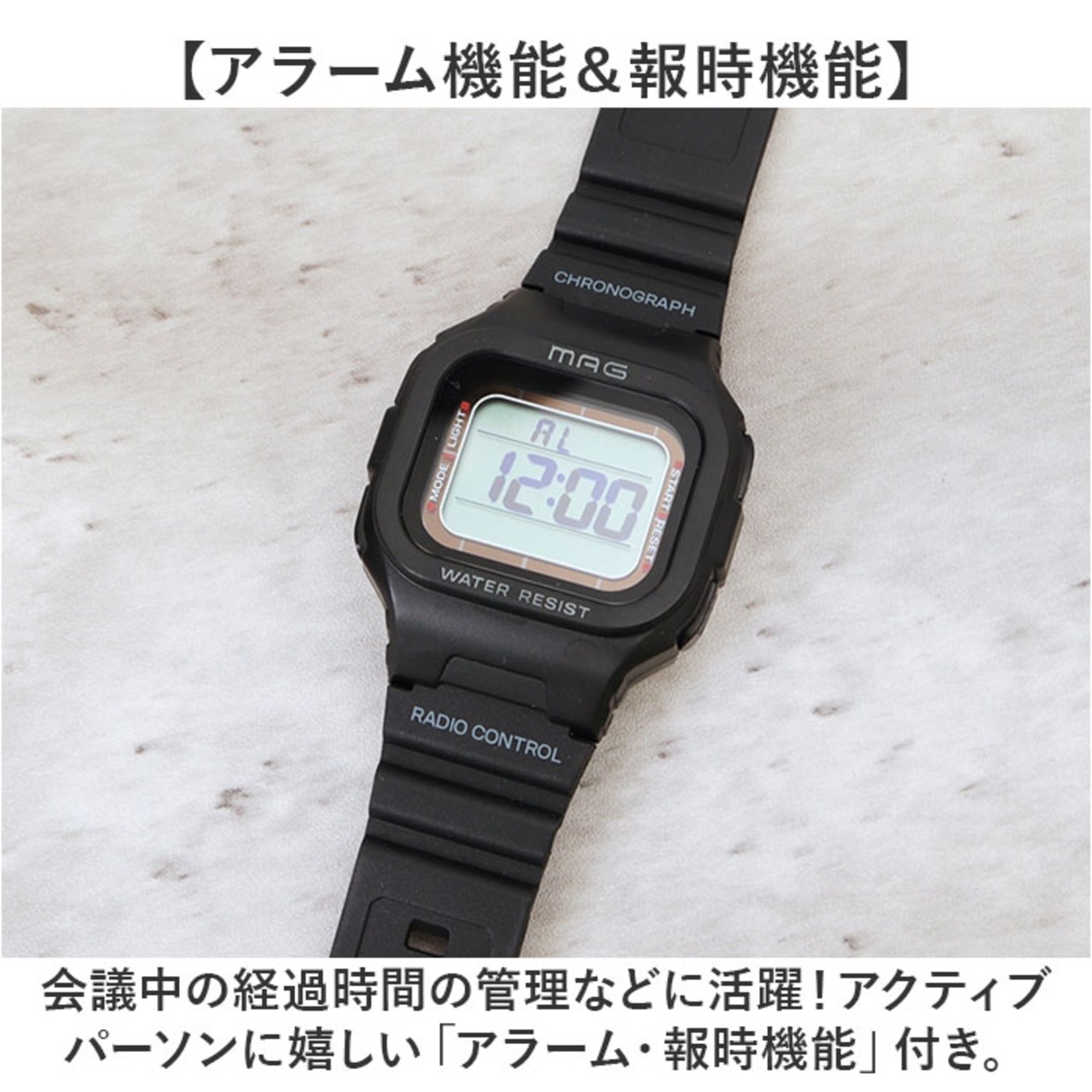 ・会議中の経過時間の管理などに活躍!アクティブパーソンに嬉しい「アラーム・報時機能」付き。