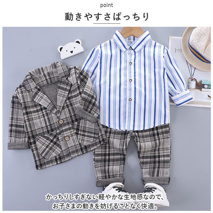 ・かっちりしすぎない軽やかな生地感なので、お子さまの動きを妨げることなく快適。