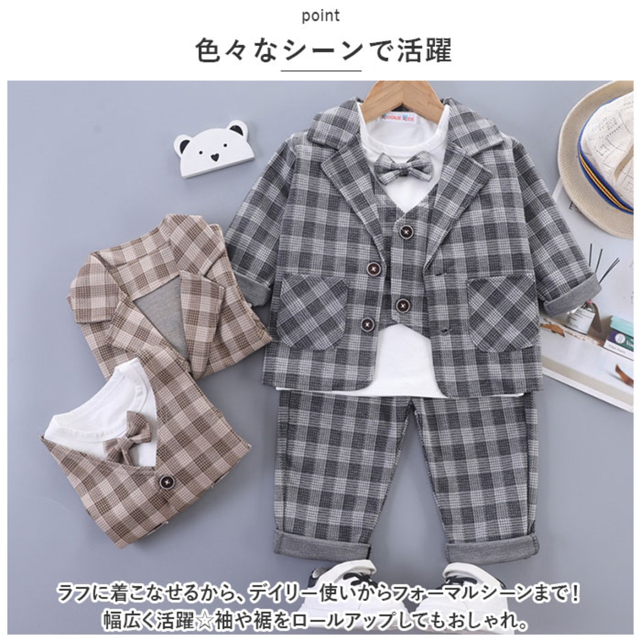 ・かっちりしすぎず、柔らかな生地感。お子さまの動きを妨げない!
