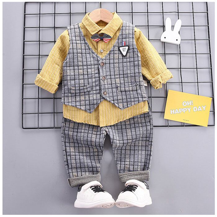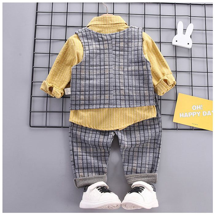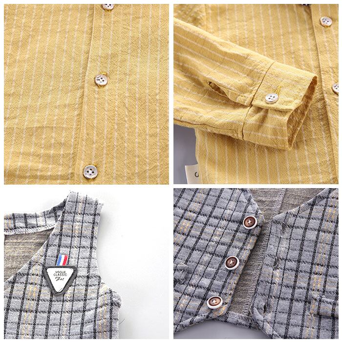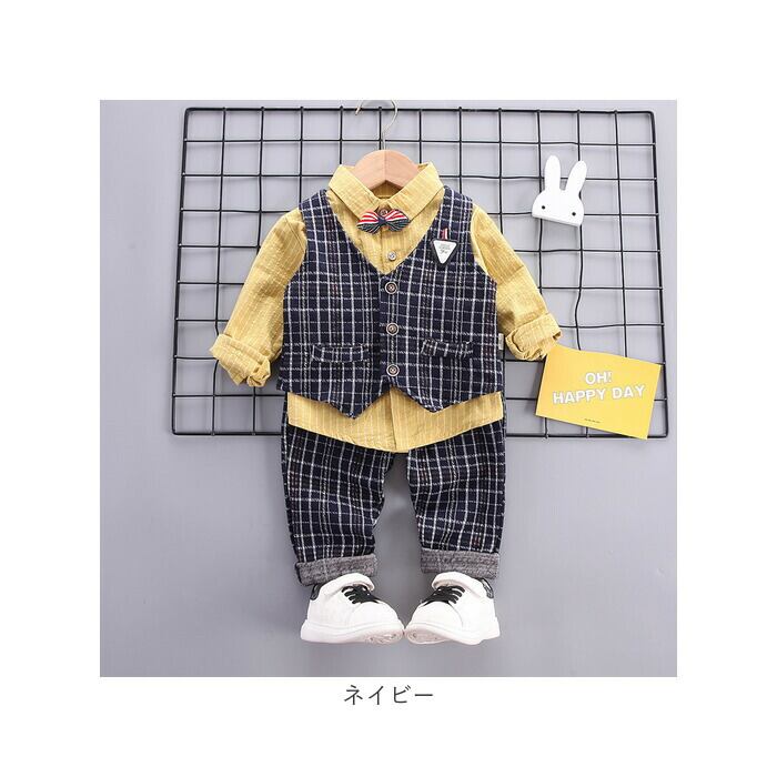 ・長袖シャツ、ベスト、ロングパンツの3点セット。大人顔負けのスタイリングが完成☆