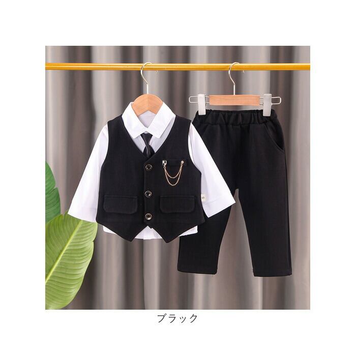 フォーマルスーツ キッズ 無地 通販 パンツスーツ フォーマル スーツ ネクタイ ズボン パンツ ベスト シャツ 長袖 子供服 子ども服 男の子 子供 子ども こども 発表会