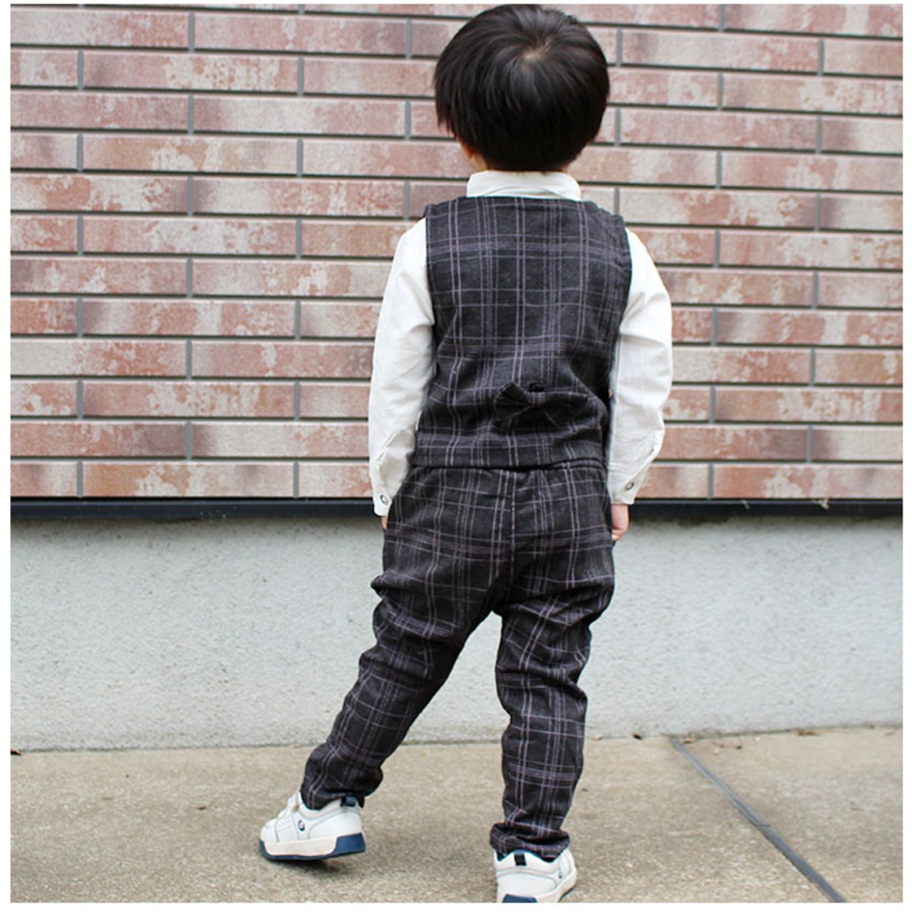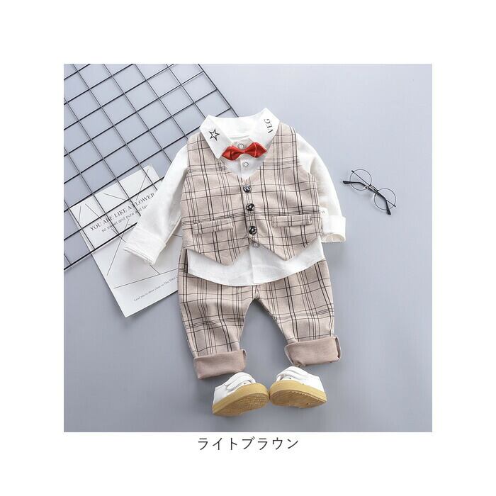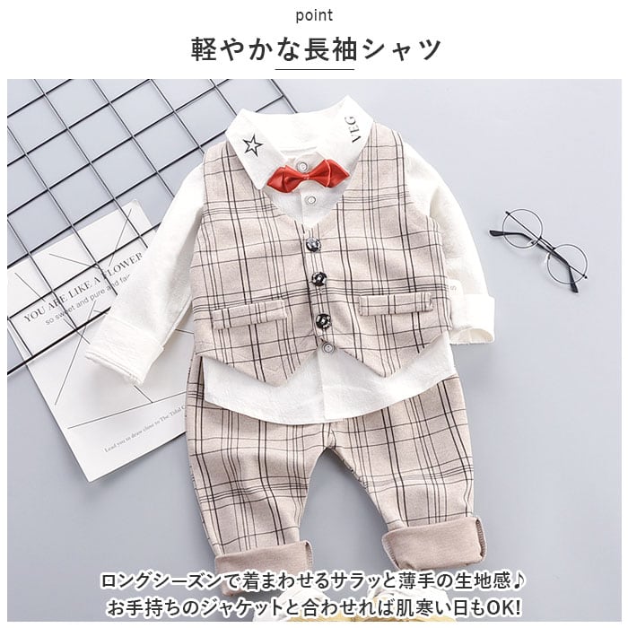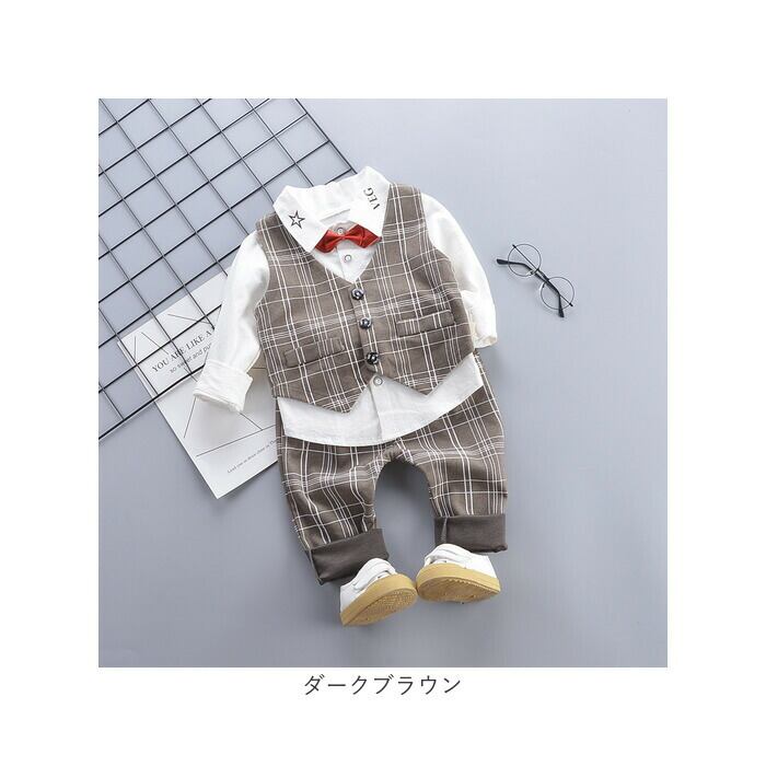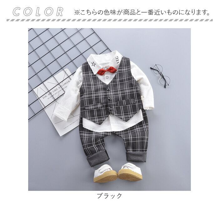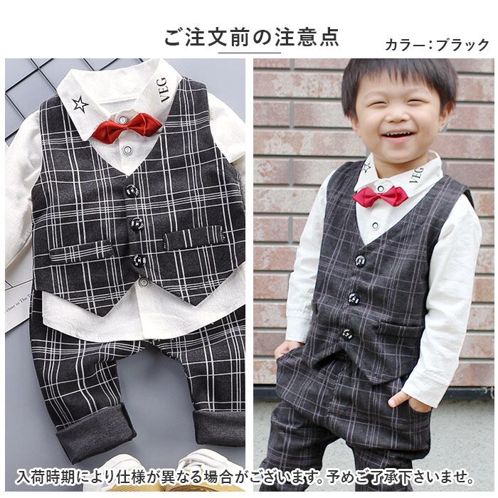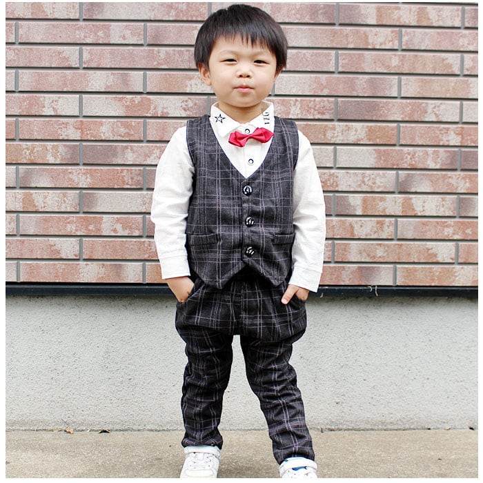 フォーマルスーツ キッズ チェック柄 通販 パンツスーツ フォーマル スーツ 蝶ネクタイ リボン ズボン パンツ ベスト 長袖 子供服 子ども服 男の子 子供 子ども こども 発表会