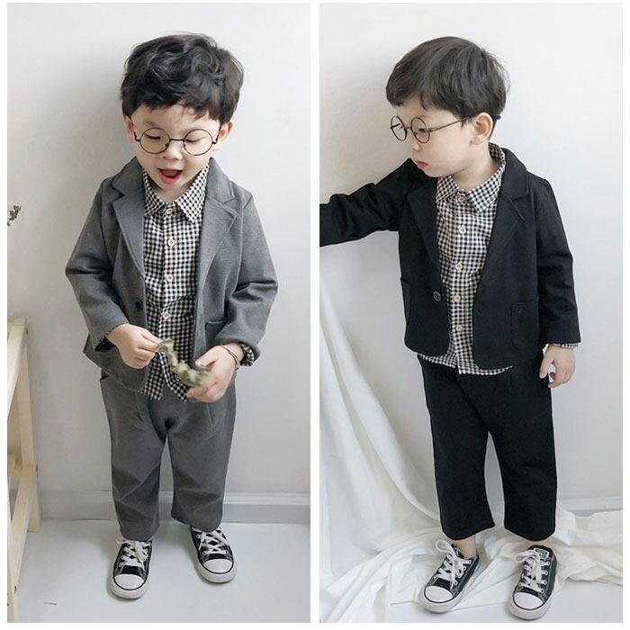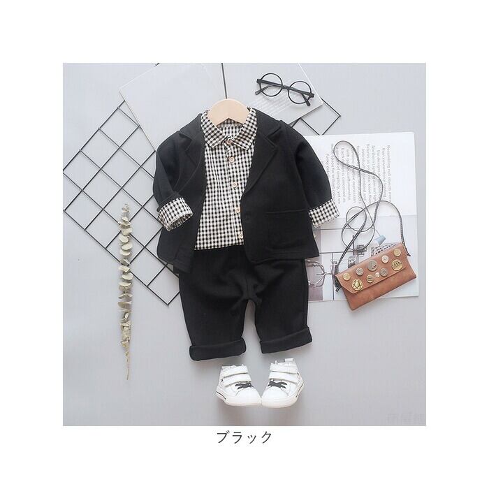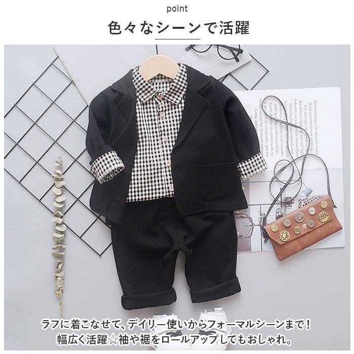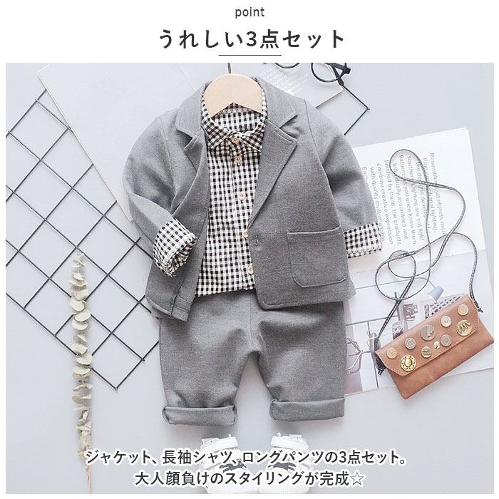 ・ジャケット、長袖シャツ、ロングパンツの3点セット。大人顔負けのスタイリングが完成☆
