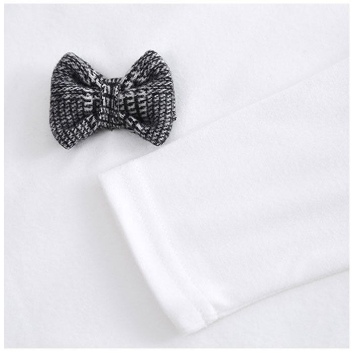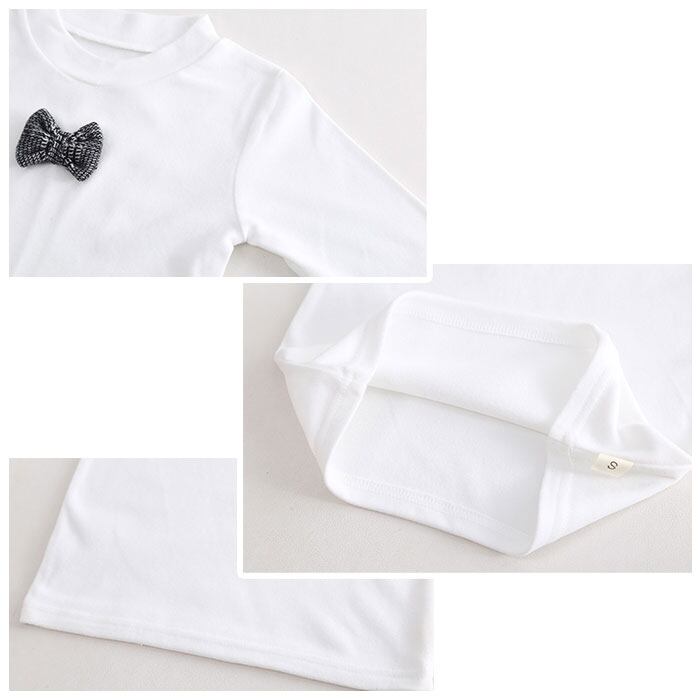 ・しっとり柔らかく、チクチク感のない仕上がり。蝶ネクタイのようなモチーフをフロントにプラスし、カジュアルフォーマルスタイルに!