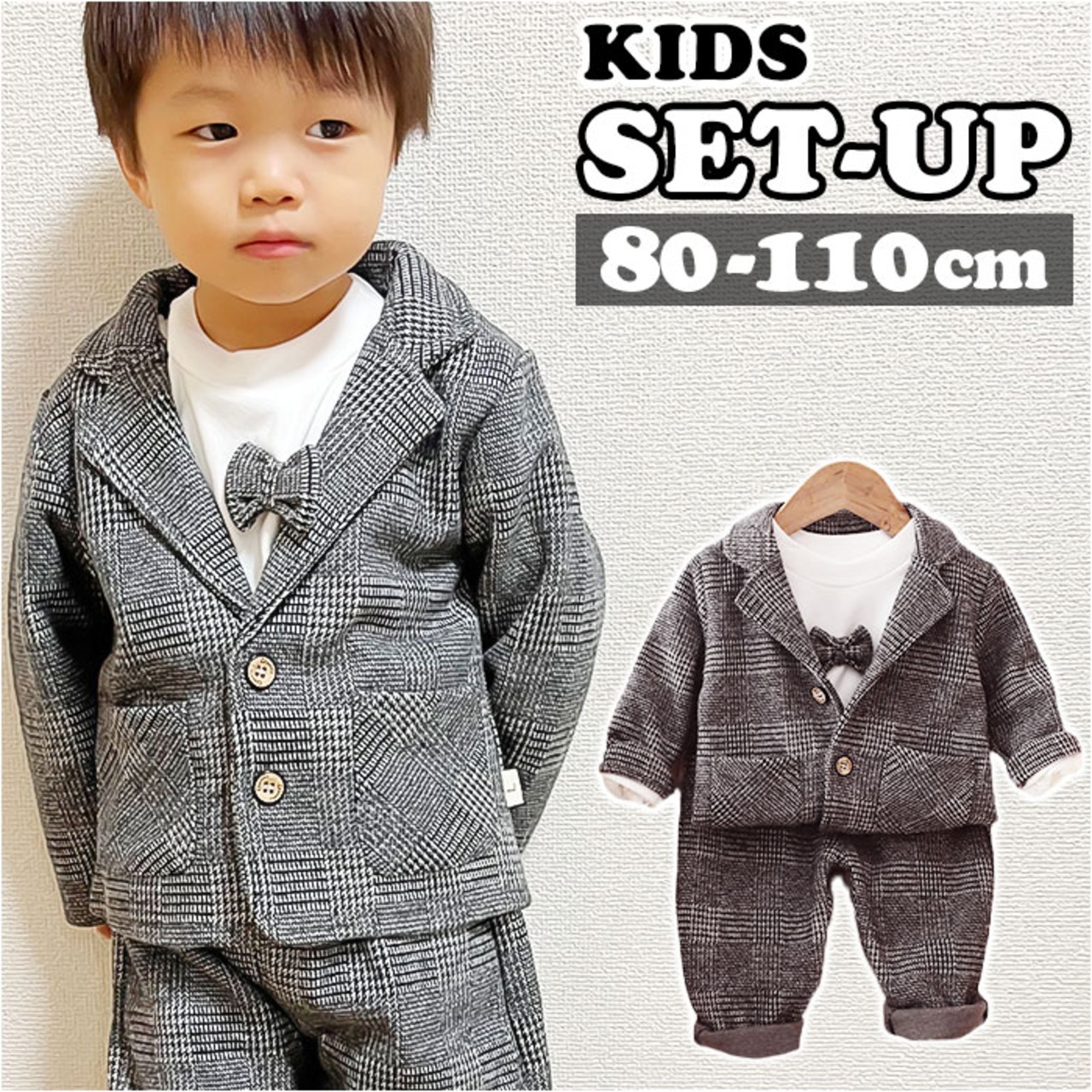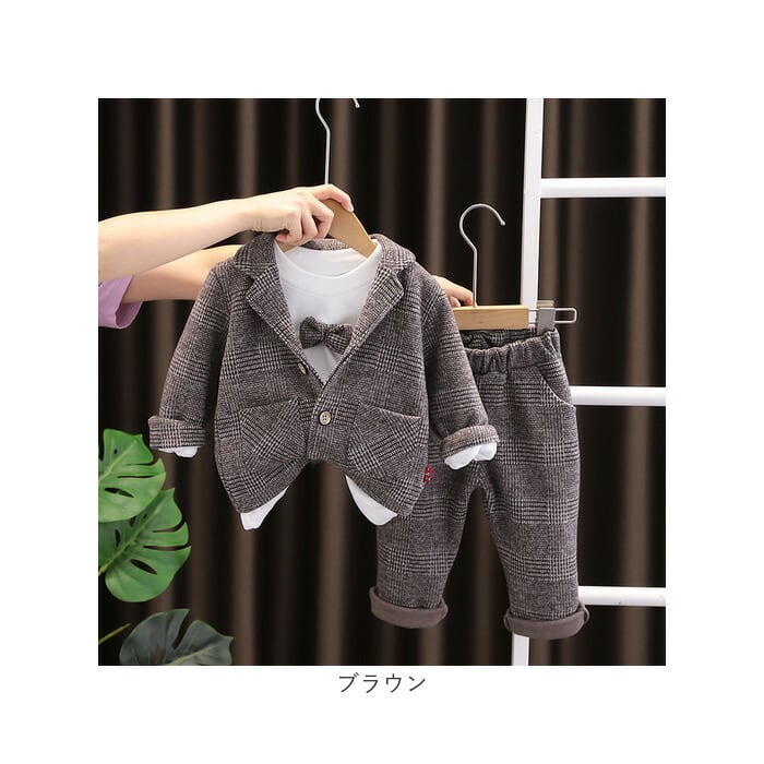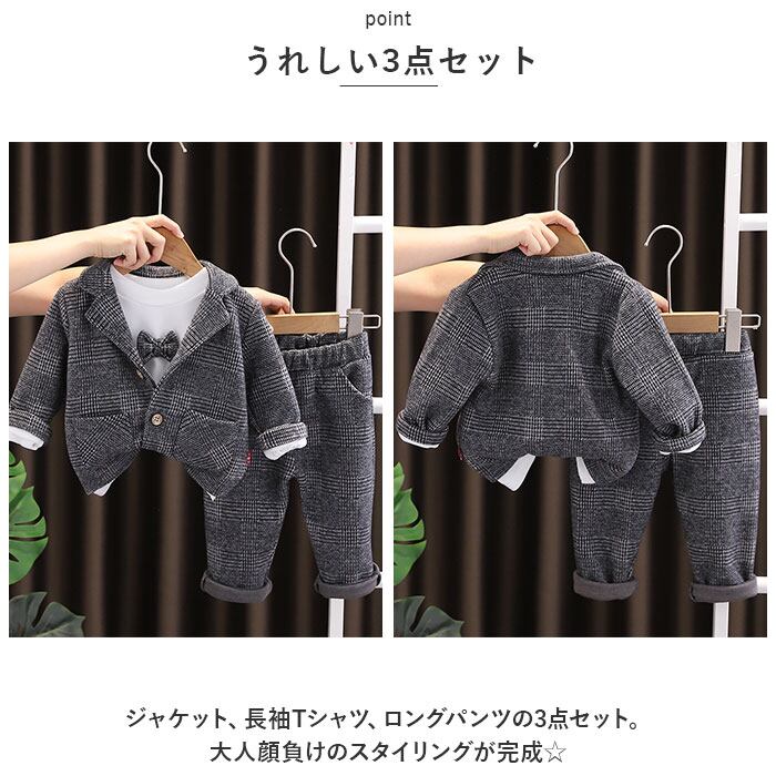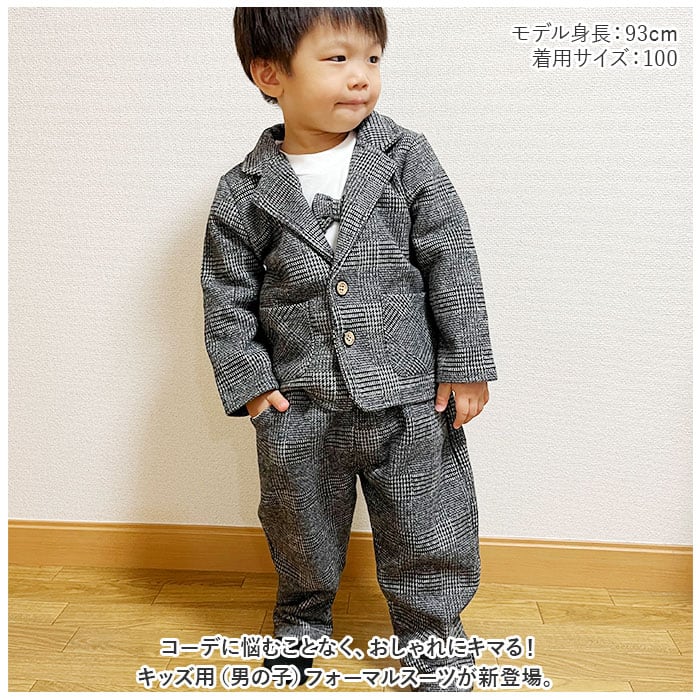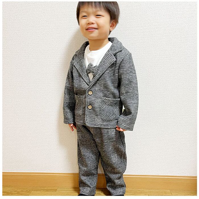 フォーマルスーツ キッズ チェック柄 通販 パンツスーツ フォーマル スーツ ジャケット 蝶ネクタイ リボン ズボン パンツ 子供服 子ども服 柄 ポケット 男の子 子供 子ども こども 発表会