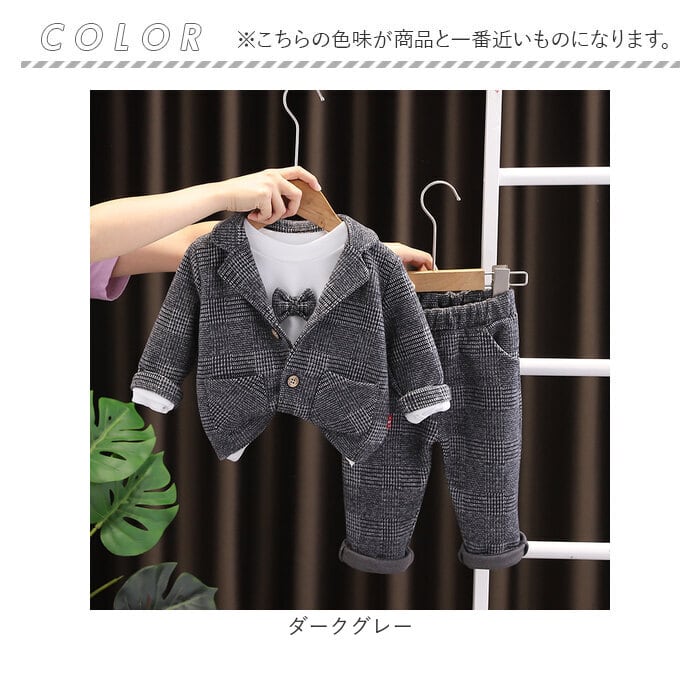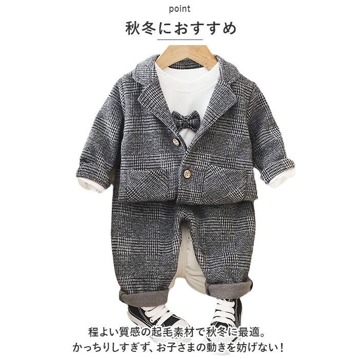 ・程よい質感の起毛素材で秋冬に最適。かっちりしすぎず、お子さまの動きを妨げない!