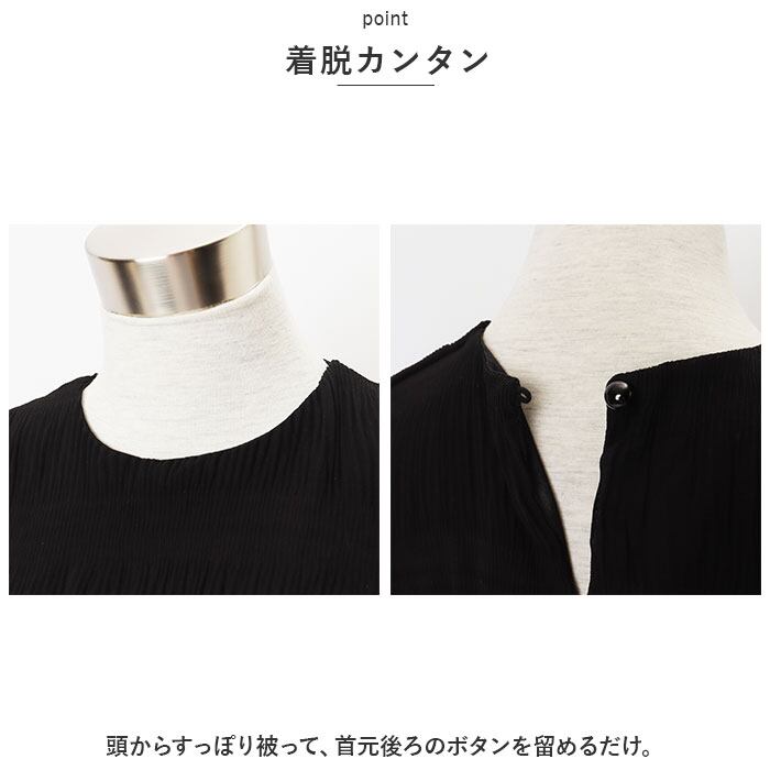 ・頭からすっぽり被って、首元後ろのボタンを留めるだけ。
