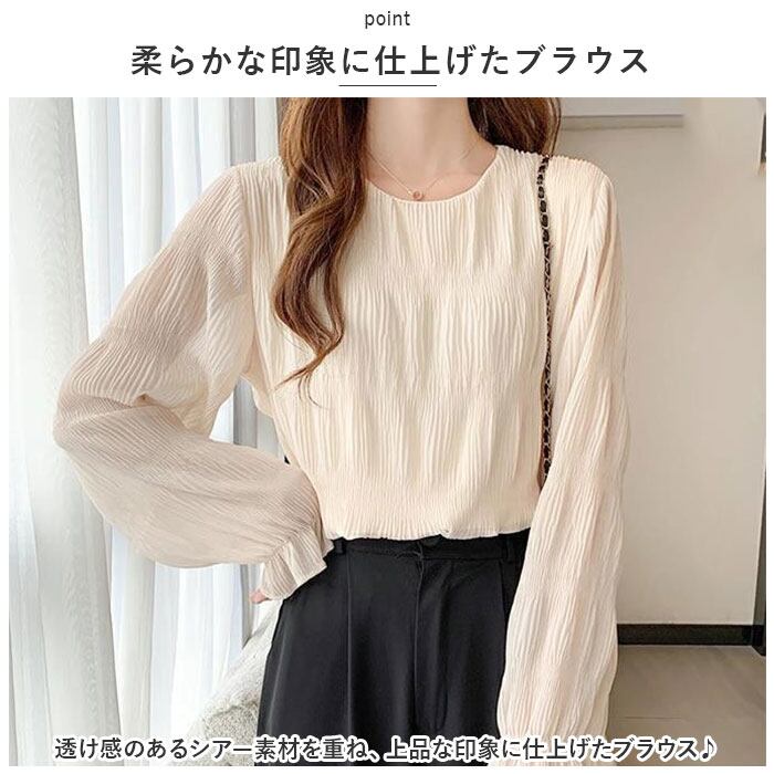 長袖 シアーシャツ 通販 シャツ カットソー レディース プルオーバー ギャザーブラウス トップス シースルー 通勤 通学 無地 シンプル カジュアル きれいめ おしゃれ 大人 可愛い 春 夏 秋