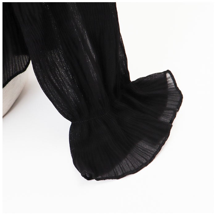 ・袖部分はふわっと丸みのあるフォルムで、気になる腕まわりもおしゃれにカバー。袖口にピタッと留まるゴムが入った長袖タイプ。