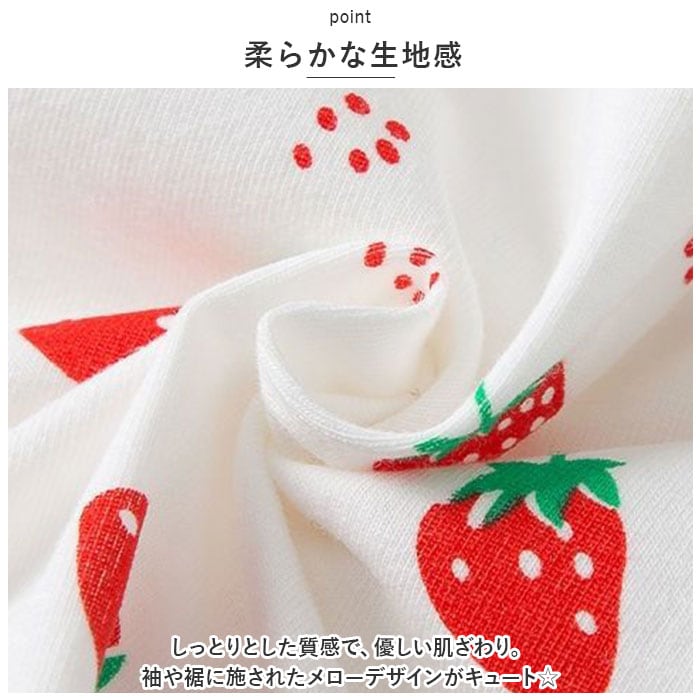 ・しっとりとした質感で、優しい肌ざわり。袖や裾に施されたメローデザインがキュート☆