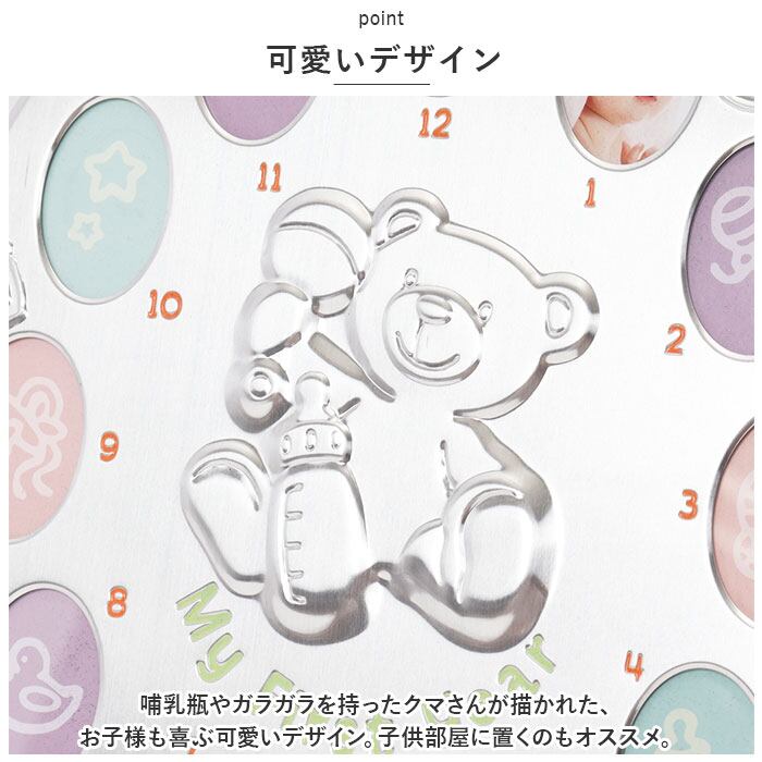 茶谷産業 フォトフレーム ベア 通販 写真フレーム 写真入れ 壁掛時計 壁掛け 時計 写真 フォト クロックフレーム 思い出 赤ちゃん ベビー 家族写真 出産祝い おしゃれ かわいい ギフト 贈り物 インテリア My First Year