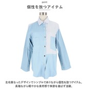 ・左右異なったデザインでシンプルでありながら個性を放つアイテム。長袖ながら軽やかな素材感で季節を選ばず活躍。