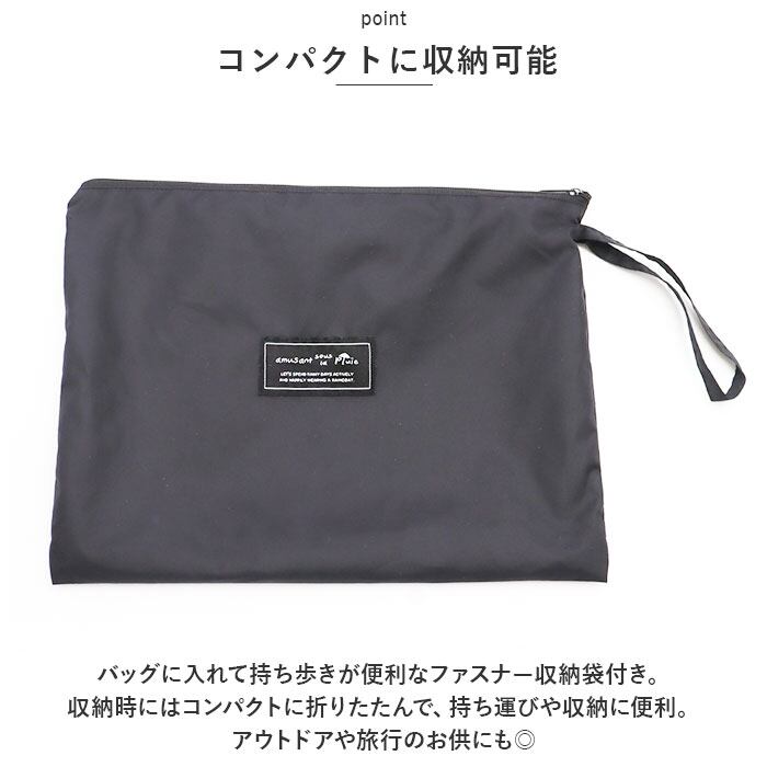 ・バッグに入れて持ち歩きが便利なファスナー収納袋付き。収納時にはコンパクトに折りたたんで、持ち運びや収納に便利。アウトドアや旅行のお供にも◎