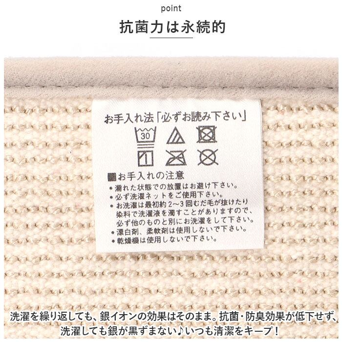 ・洗濯を繰り返しても、銀イオンの効果はそのまま。抗菌・防臭効果が低下せず、洗濯しても銀が黒ずまない♪いつも清潔をキープ!