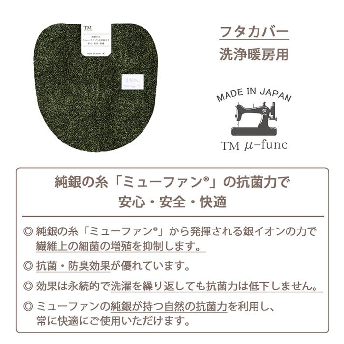 ・純銀の糸ミューファン(R)を織り込んだフタカバー。銀イオンの力で繊維上の細菌の増殖を抑制。人体には安全な”銀”の持つ自然な力を活用しているので安心。