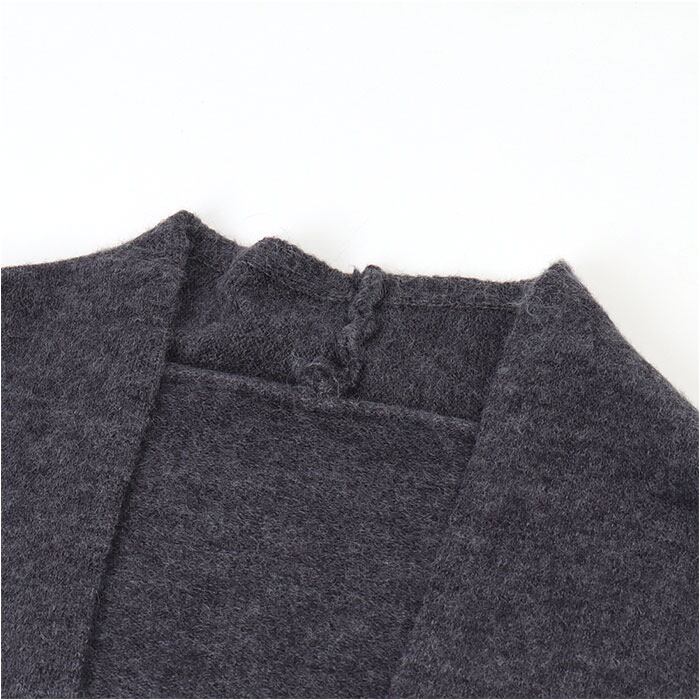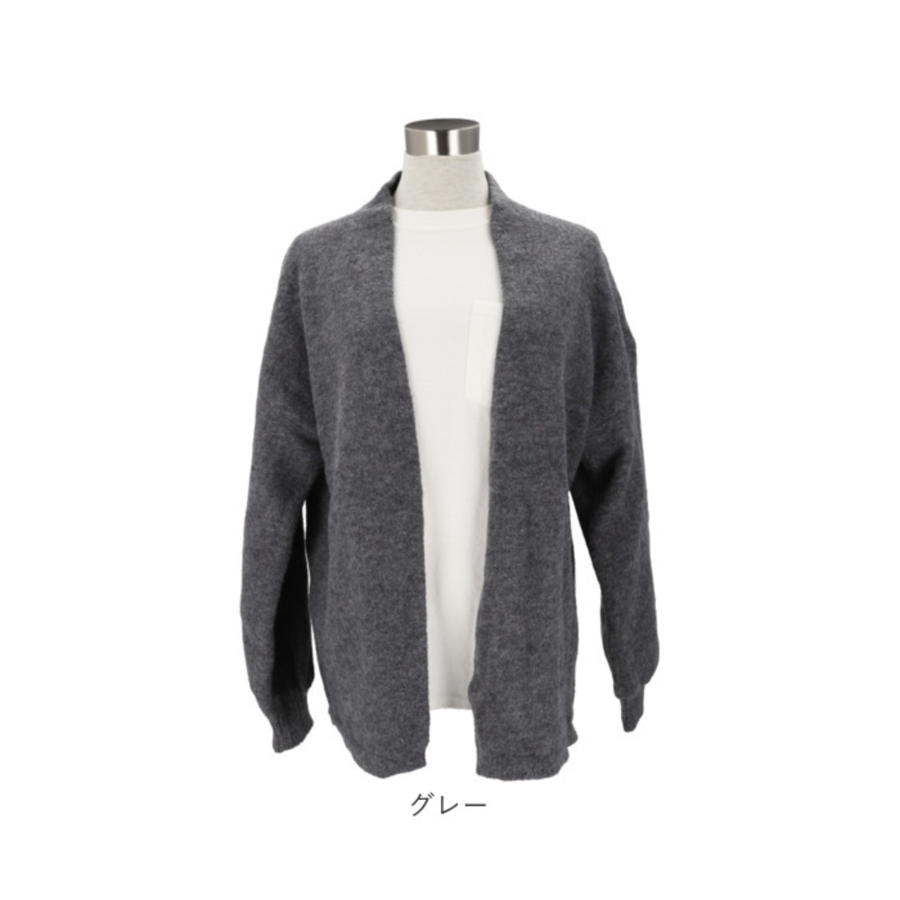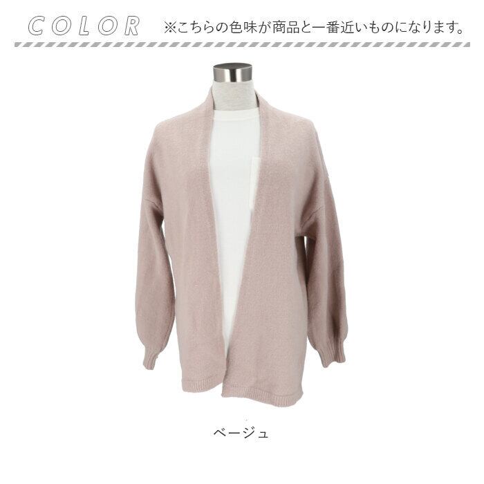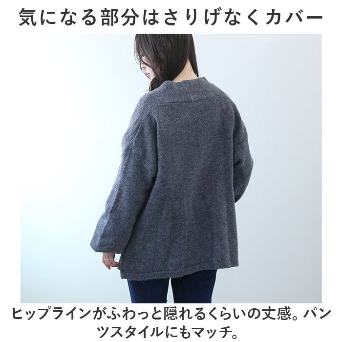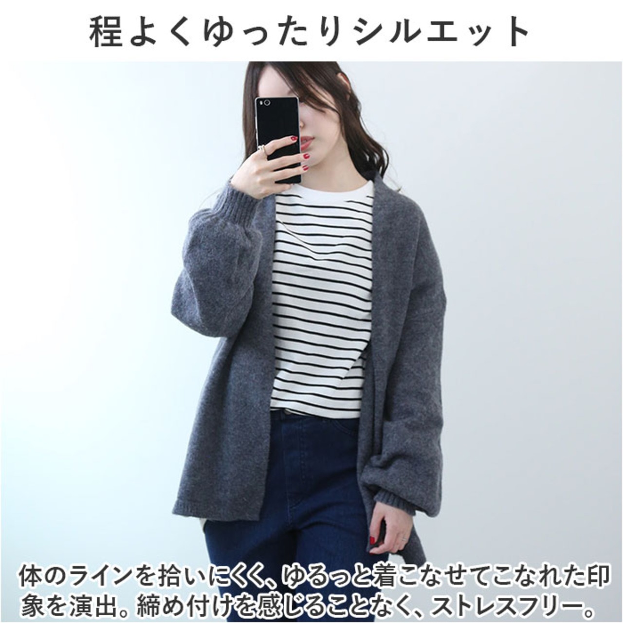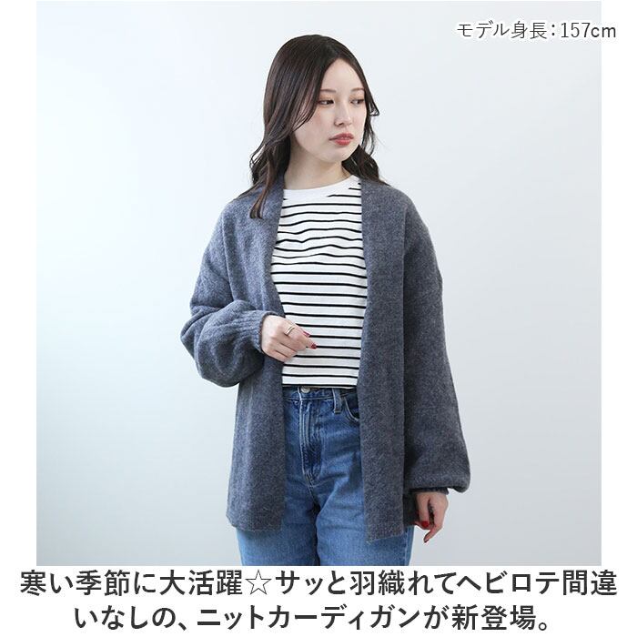 ・サッと羽織れるボタンなしタイプ。クルーネックやハイネックなどのトップスと相性抜群。