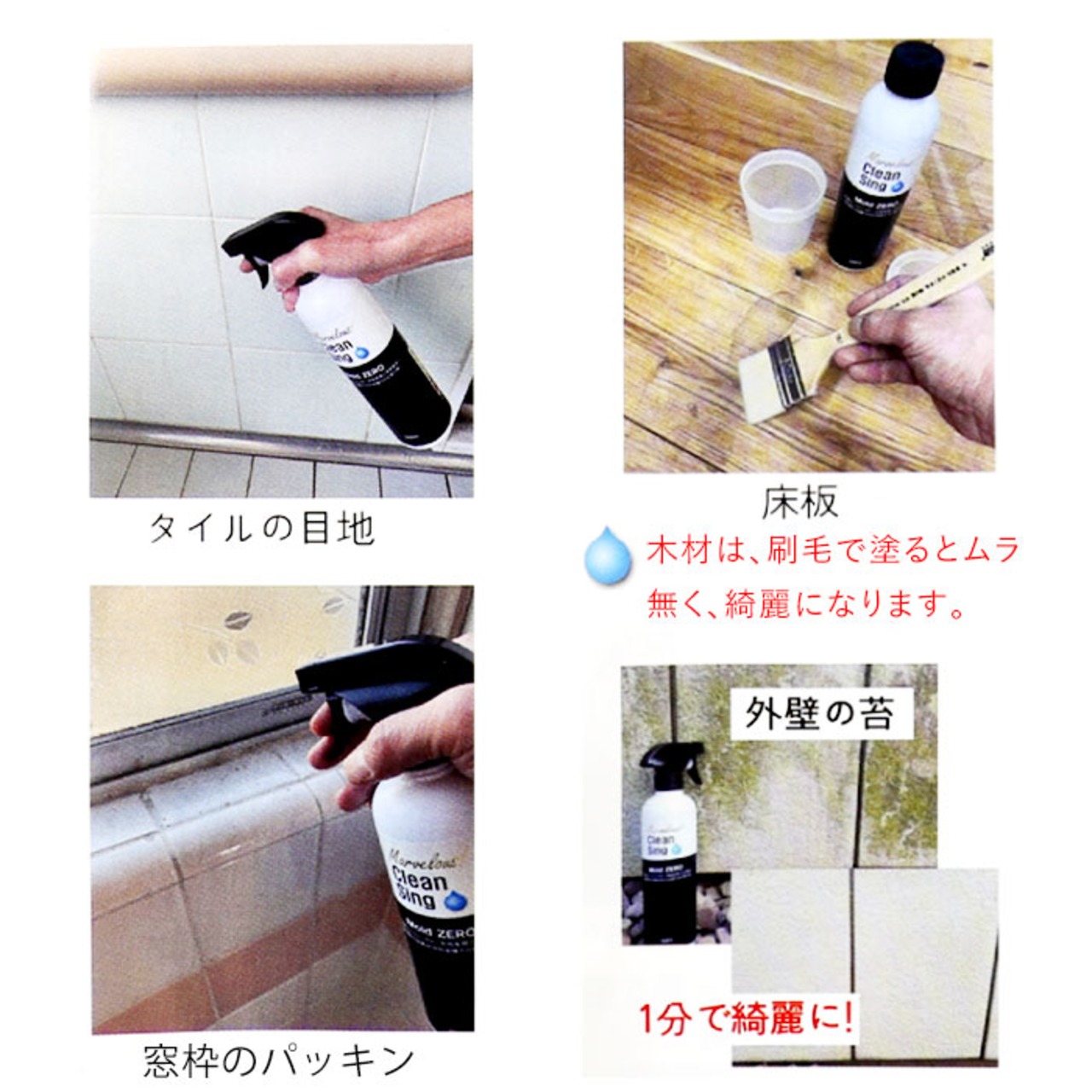 ※他の液体と混合しないで下さい。酸性タイプの製品や食酢・アルコール等と混ざると有毒ガスが発生して危険です。MoldZERO使用後も、必ず洗い流してから次の洗剤を使うようにして下さい。