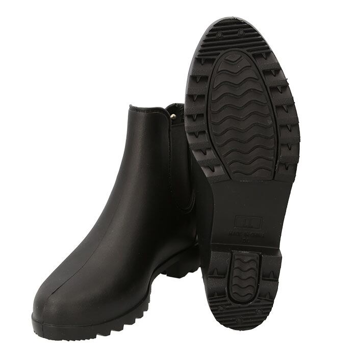 ・スーツにもカジュアルにも合わせやすく、レインブーツに見えないオシャレなデザイン。