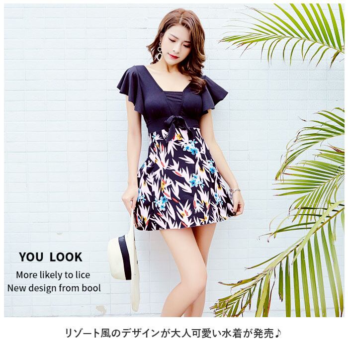 ワンピース水着 体型カバー レディース 通販 ワンピース ワンピ ママ水着 背中見える 水着 一体式 スカート フリル 女性 カジュアル かわいい コンサバ プール ビーチ 海水浴