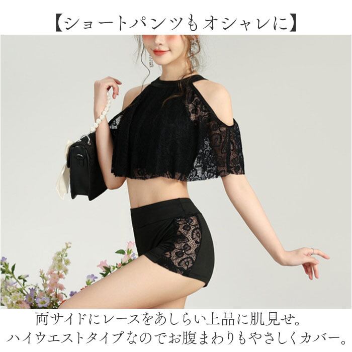 ・両サイドにレースをあしらい上品に肌見せ。ハイウエストタイプなのでお腹まわりもやさしくカバー。