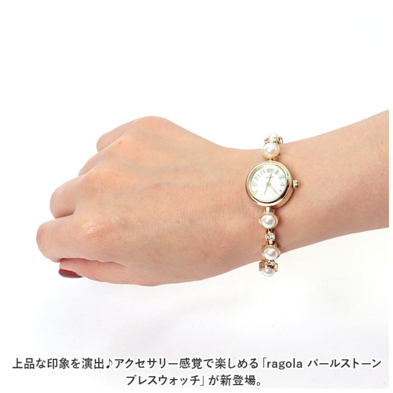 ・上品な印象を演出♪アクセサリー感覚で楽しめる「ragola パールストーンブレスウォッチ」が新登場。