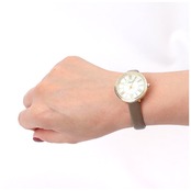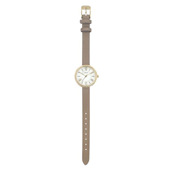 ・文字盤のまわりに、キラキラ輝くストーンを配置。女性らしい手元を演出し、コーデのアクセントに。