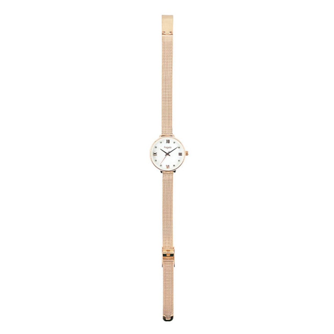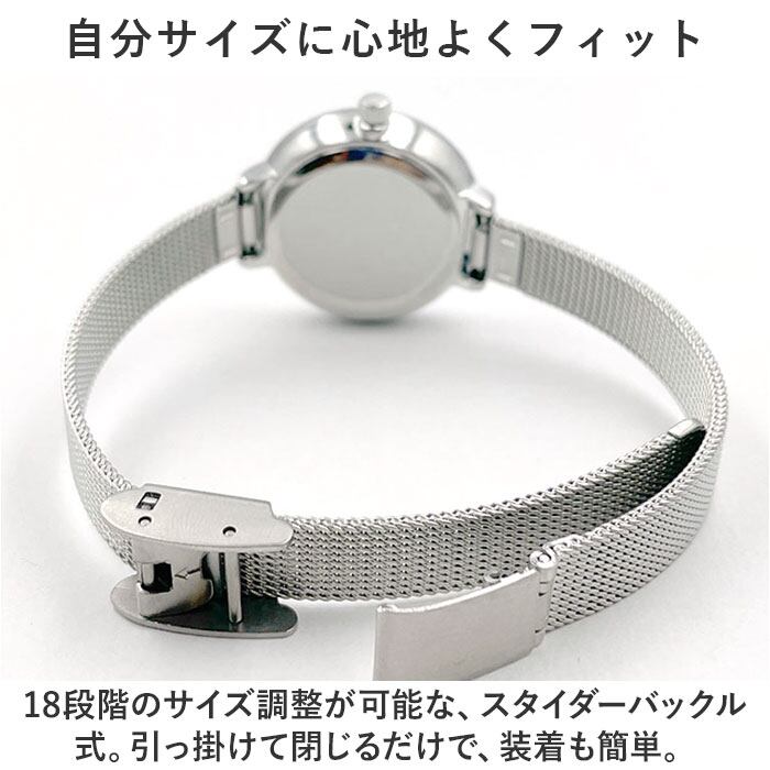 ・小ぶりでころんとしたケースは、細身のメッシュバンドと相性ばっちり。程よく存在感を放つ大人な仕上がりで、キレイめコーデにもマッチ。