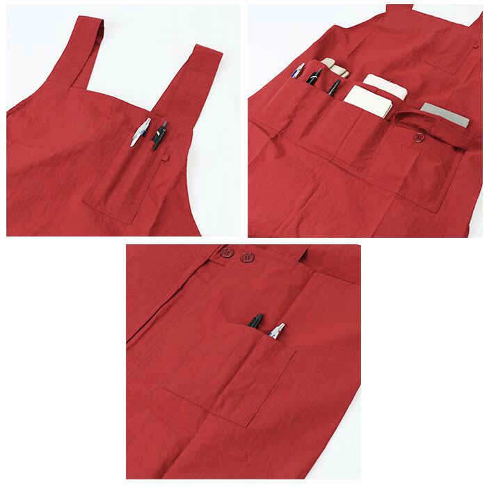 ・胸元のペン挿し、バックやフロントのたくさん入るポケット付きで、機能性も抜群◎