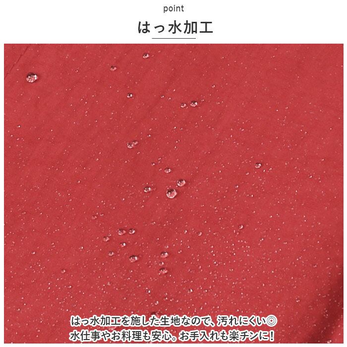 ・はっ水加工を施した生地なので、汚れにくい◎水仕事やお料理も安心。お手入れも楽チンに!