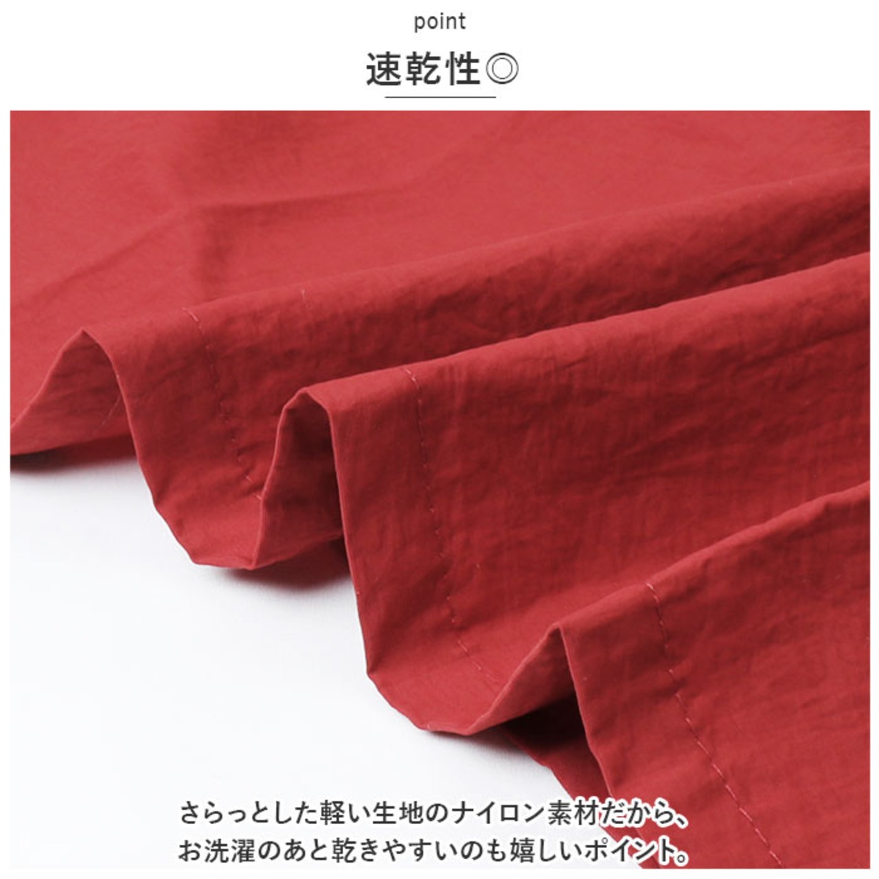 ・さらっとした軽い生地のナイロン素材だから、お洗濯のあと乾きやすいのも嬉しいポイント。