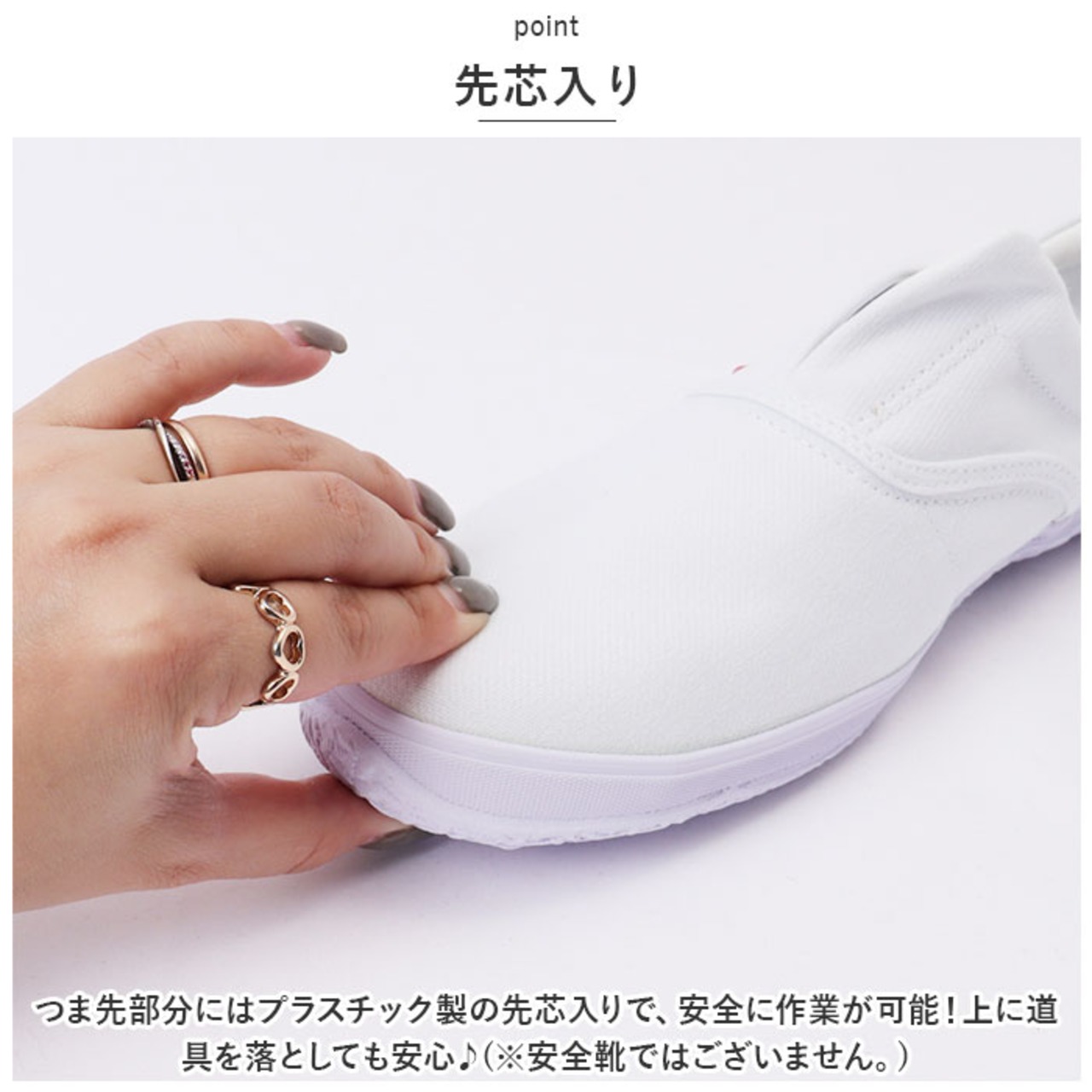 ・つま先部分にはプラスチック製の先芯入りで、安全に作業が可能!上に道具を落としても安心♪(※安全靴ではございません。)