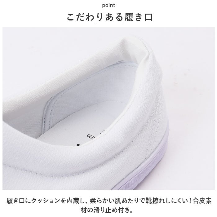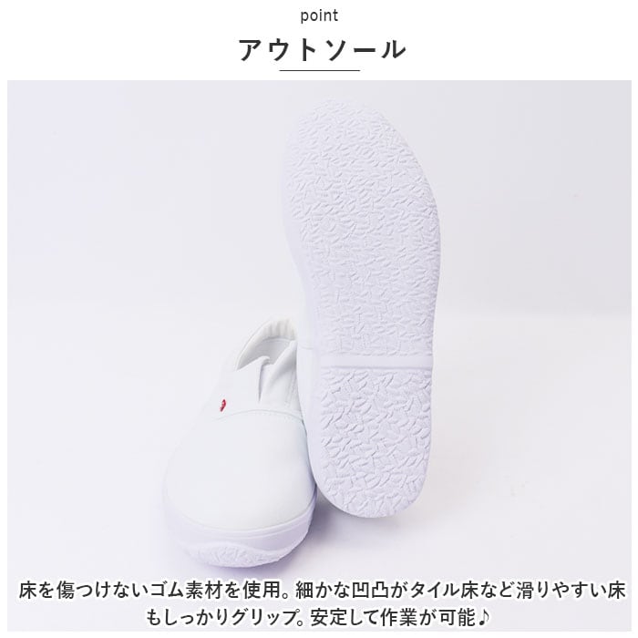 ・清潔感のあるまっしろなデザインで靴感が少ない上履き仕様。