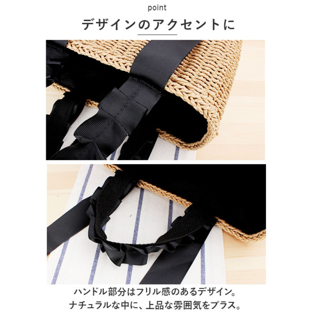・ハンドル部分はフリル感のあるデザイン。ナチュラルな中に、上品な雰囲気をプラス。