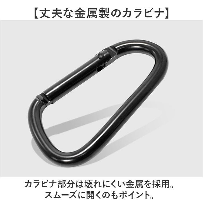 ・カラビナ部分は壊れにくい金属を採用。スムーズに開くのもポイント。