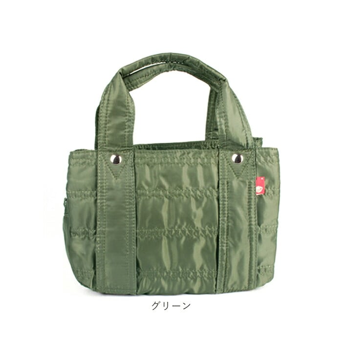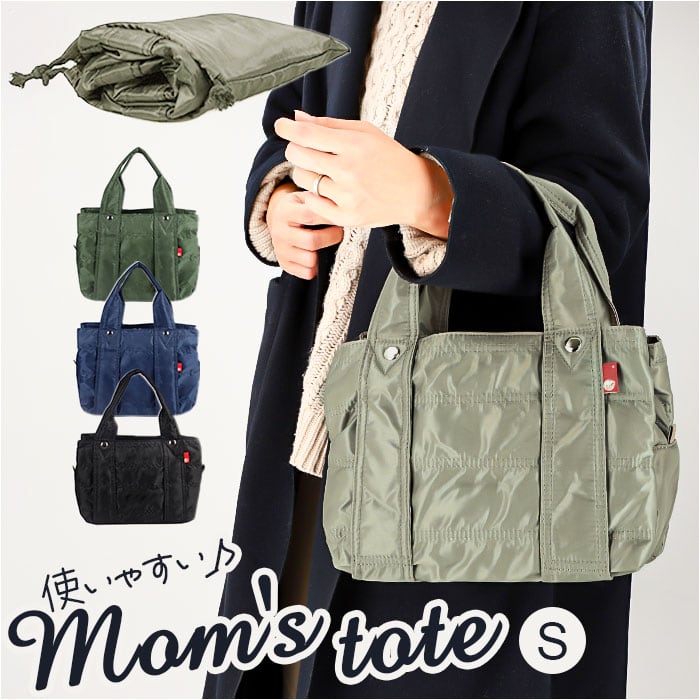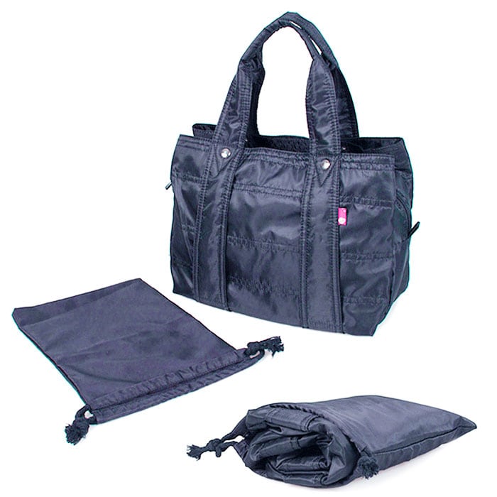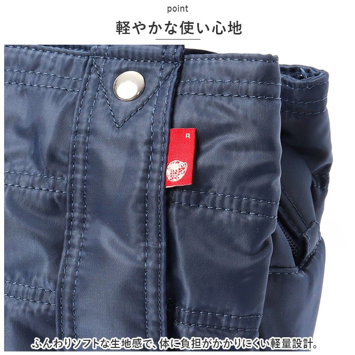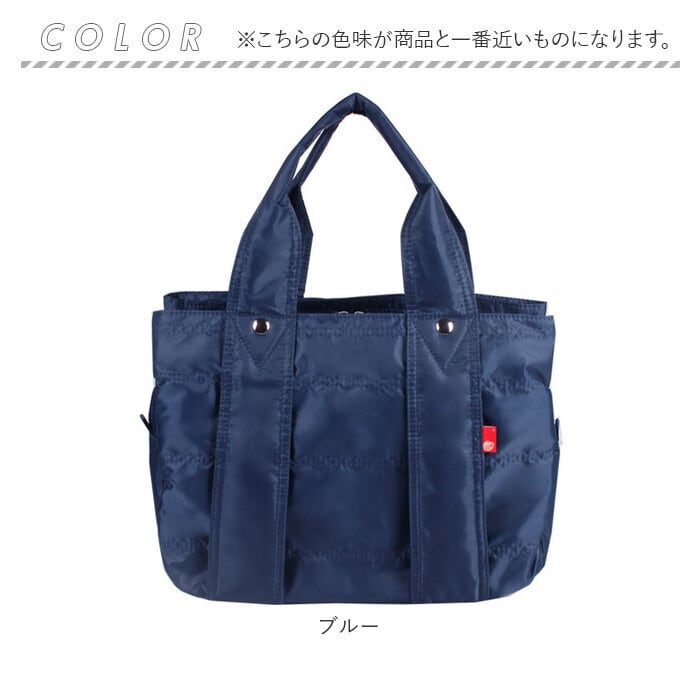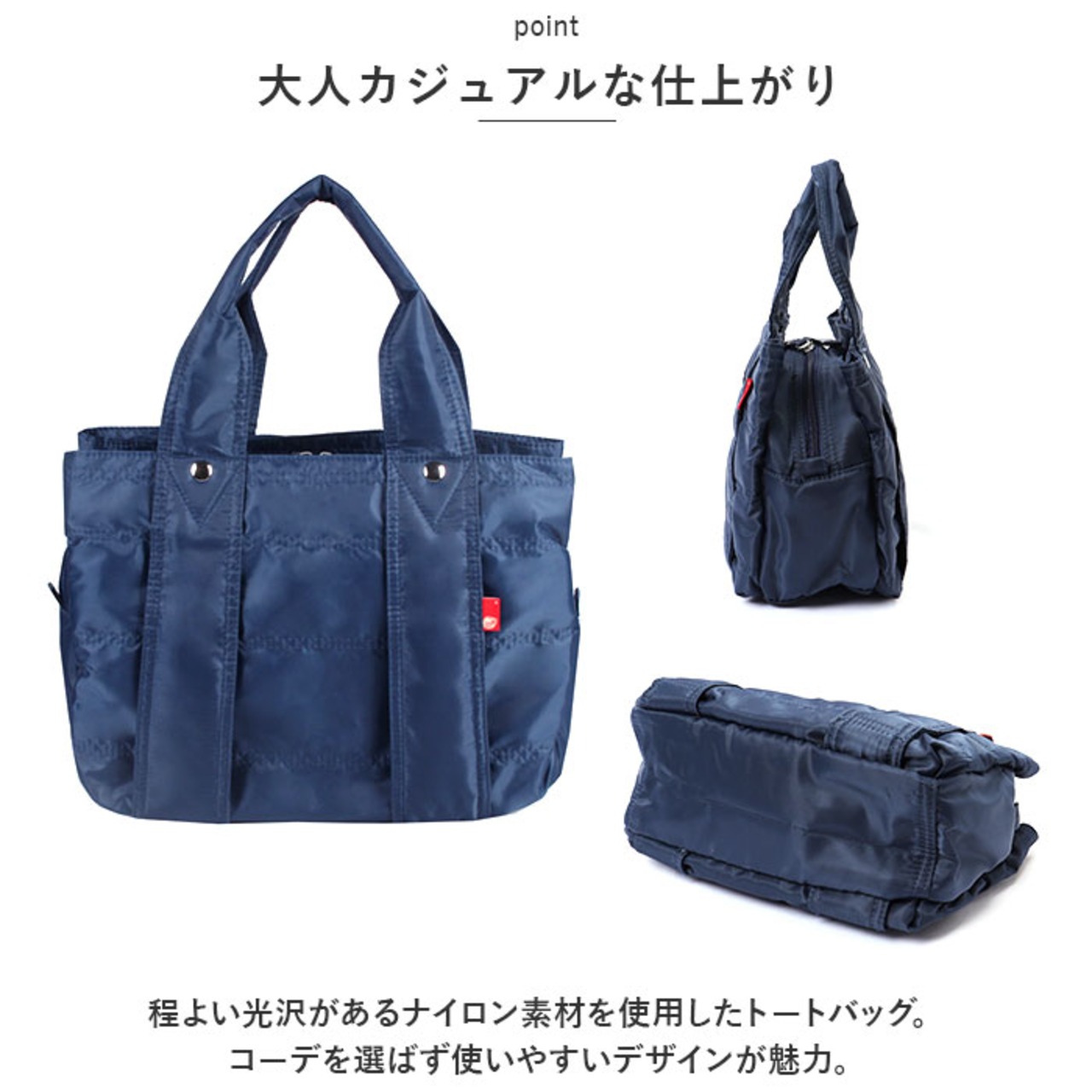 ・程よい光沢があるナイロン素材を使用したトートバッグ。コーデを選ばず使いやすいデザインが魅力。