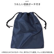 ・小物をまとめておけるポーチは、旅行などでも重宝。キュッと絞る巾着仕様。