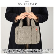 ・お出かけのマストアイテムが、すっきりまとまるサイズ感。程よいマチ設計で電車やバス移動時にも邪魔になりにくく、スマートに持ち歩きOK!