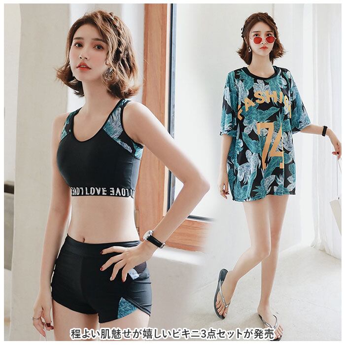 フィットネス水着 レディース 体型カバー 3点セット 通販 フィットネス 水着 セパレート ショートパンツ タンキニ タンク ビキニ 水着セット 体型カバー ママ水着 大人 かわいい 女性 ジム スポーツ スポーティ