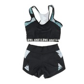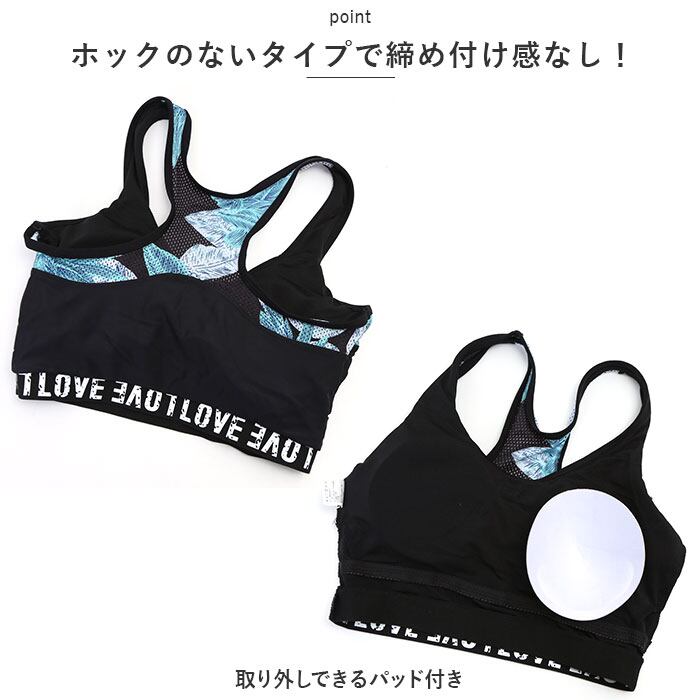 ・英字ロゴが描かれたブラはホックのないタイプで締め付け感なし!