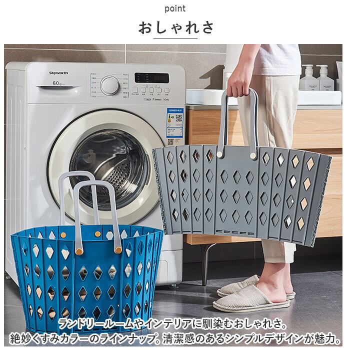 ランドリーバスケット 折りたたみ 自立 通販 洗濯カゴ ランドリーバッグ ランドリー収納 洗濯 ランドリー ボックス バスケット 洗濯物 かご カゴ 大容量 スリム 取っ手付き プラスチック 脱衣所 洗面所 買い物かご おもちゃ収納 リビング おしゃれ
