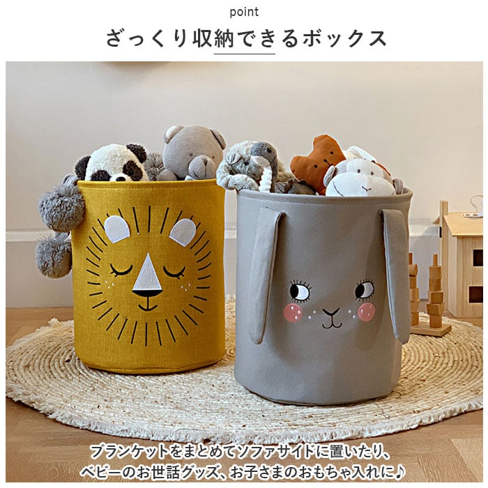 ・ブランケットをまとめてソファサイドに置いたり、ベビーのお世話グッズ、お子さまのおもちゃ入れに♪